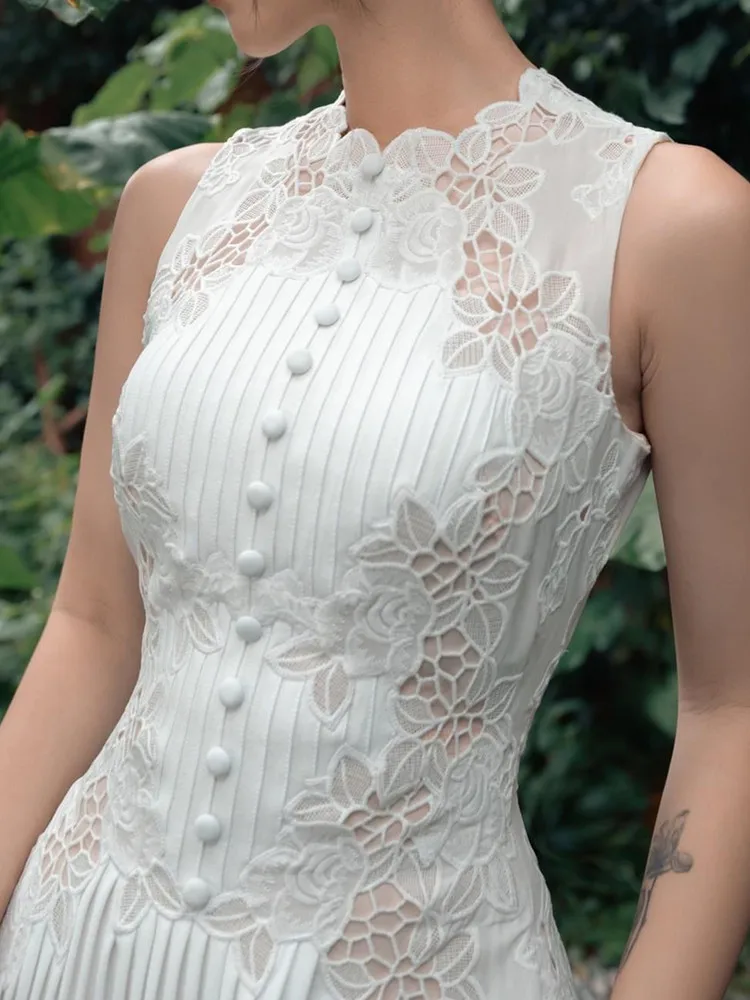Discover the perfect summer look with the 2024 White Sleeveless Dress. Featuring intricate lace and rose embroidery, this elegant long dress offers both style and comfort for any occasion.