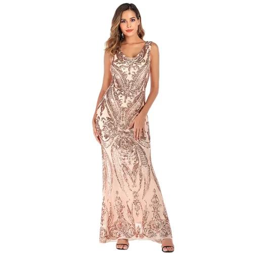 Elevate your evening look with this exquisite Europe and America-inspired sexy V-neck stretch sequin dress. This elegant fishtail long dress is designed to accentuate your curves and enhance your silhouette, making it perfect for glamorous events and sophisticated evenings.