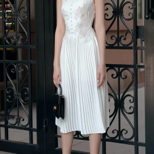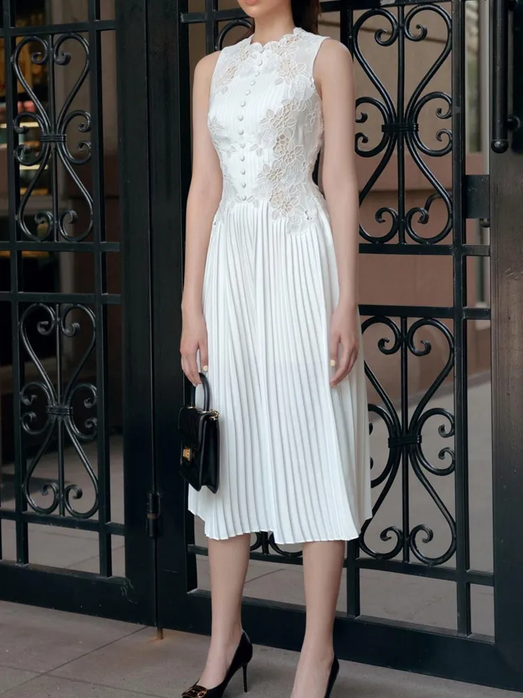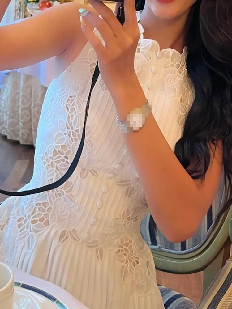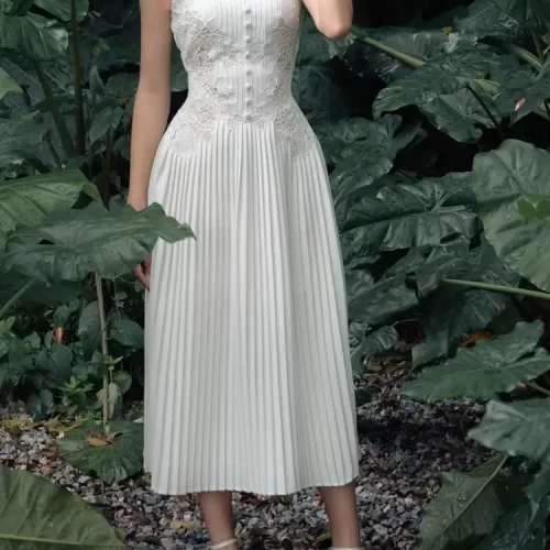 Discover the perfect summer look with the 2024 White Sleeveless Dress. Featuring intricate lace and rose embroidery, this elegant long dress offers both style and comfort for any occasion.